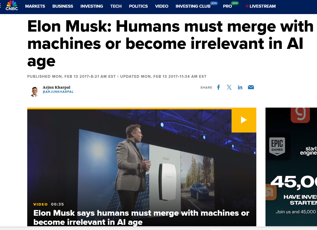 Elon Musk has often emphasized the need for humans to merge our brains with Ai and become a kind of cyborg in order to ensure the survival of our species.