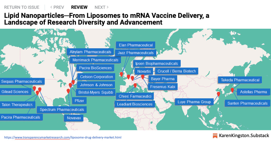 The manufacturers of mRNA lipid nanoparticles are also the top global manufacturers for vaccines and gene-editing technologies, including; Takeda, Santen, Gilead, Johnson & Johnson, Bayer, Pfizer, Elan, NovaVax, Astella, et al.