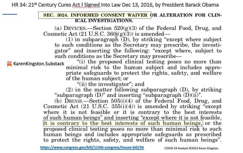 Per Section 3024 of Obama’s CURES Act, adults and parents no longer have the legal right to informed consent regarding the ingredients or potential injuries and diseases caused by any vaccine, not just COVID-19 mRNA injections.