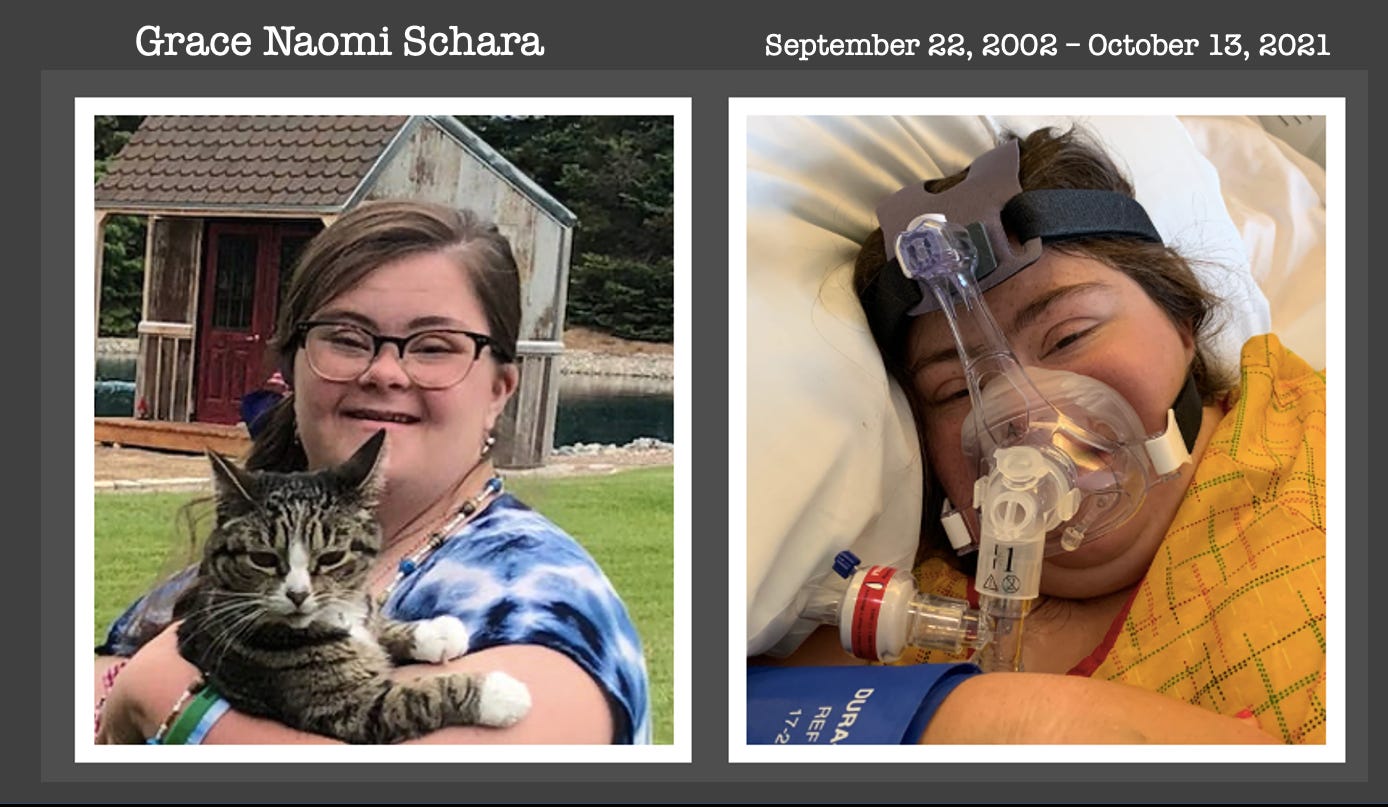 December 18,2025: On October 13, 2021, 19-year-old Grace Schara died under an illegal hospital issued DO NOT RESUSCITATE order (DNR) after being given a combination of IV sedatives including morphine, Precedex, and Ativan over a period of 6 days. These drugs are known as ‘end of life drugs,’ intended to induce death. Not only was this all done without her or her parents’ consent (informed or otherwise), but her family was begging with the hospital staff over a Face Time feed to save Grace’s life while watching her die.