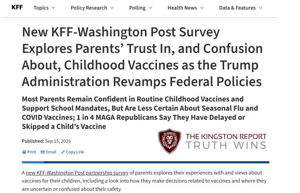 The Debate is Working: KFF/Washing Post Survey of 2,700 Parents Reports 1 out of 6 Parents Are Skipping Childhood Vaccines