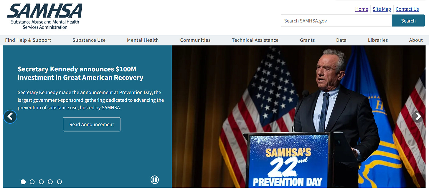 Substance Abuse and Mental Health Services Administration Image: SAMHSA website