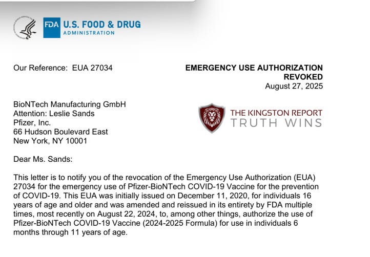 The FDA revoked the EUAs for the COVID-19 injections on August 27, 2025.