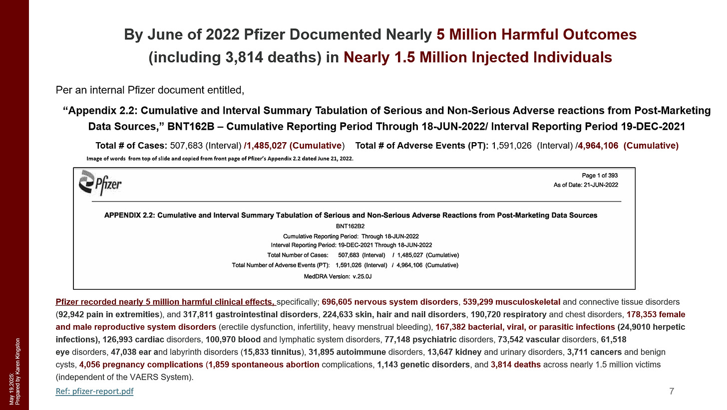 By June of 2022 Pfizer Documented Nearly 5 Million Harmful Outcomes (including 3,814 deaths) in Nearly 1.5 Million Injected Individuals