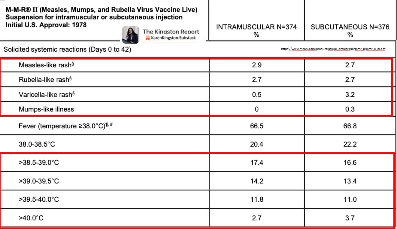 Ironically, the claim that measles was eradicated by the vaccines is contradicted by Merck’s own clinical trial data in which 3% of children got a measles-like rash and 67% of children had a developed a fever that could potentially lead to seizures.